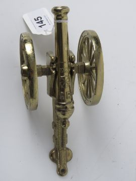 A British made brass model of a cannon having GR upon, approx 18cm in length.