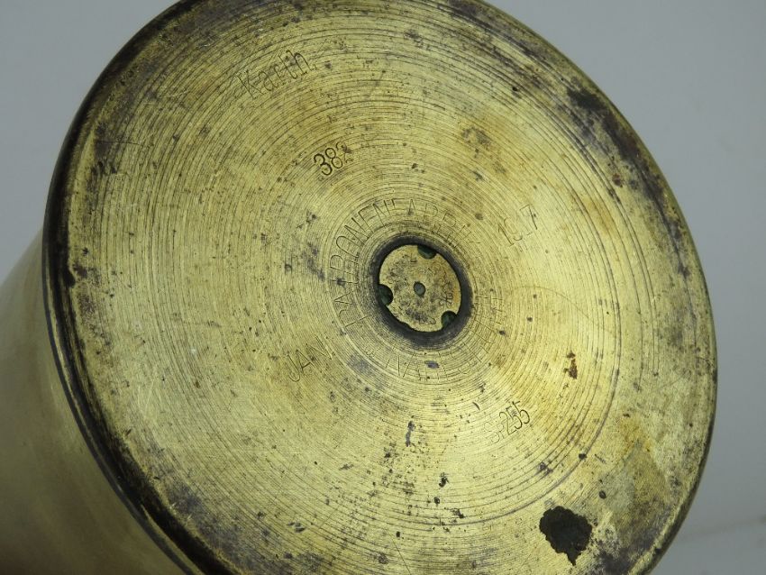 An A.RS.L14 shell dated 1911 with a relic shell head together with an SP255 shell casing dated 1917. Two items.