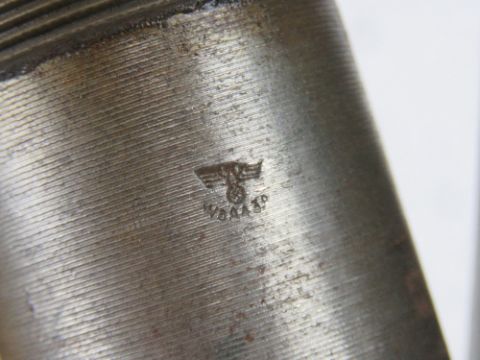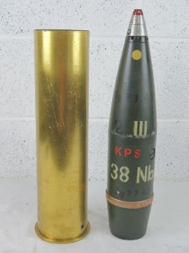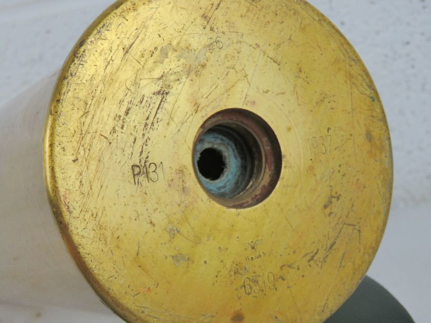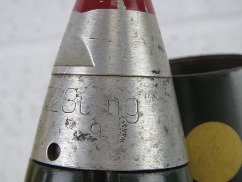 A WWII German 10.5cm separately loaded smoke round, dated 1937 and having German markings upon.