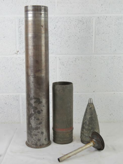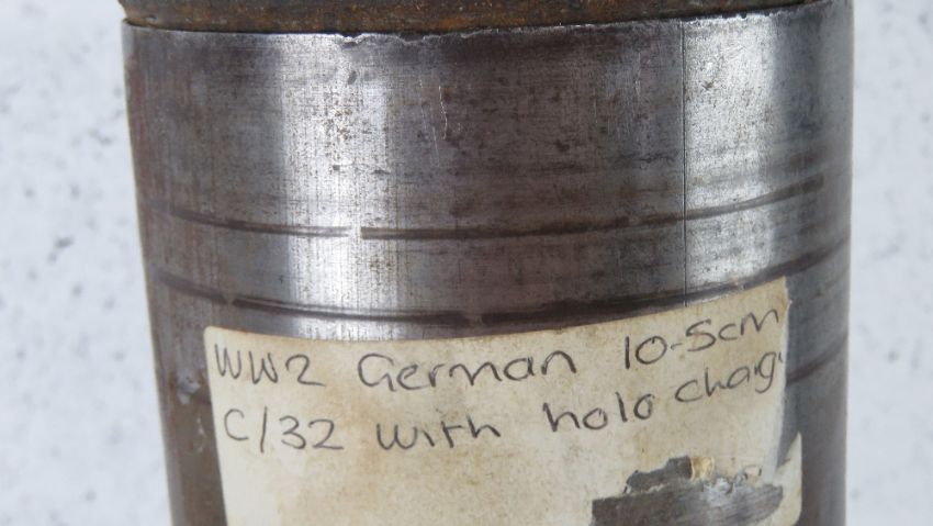 A WWII German 10.5cm hollow charge inert round, dated 1942 having German markings upon, together with an AZ38 fusedated 1943 having German markings upon.