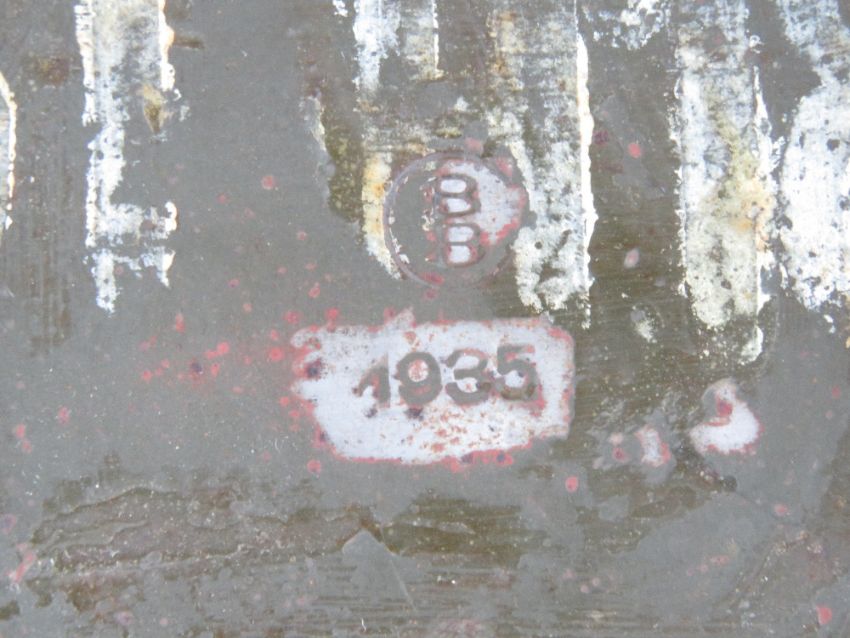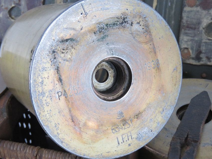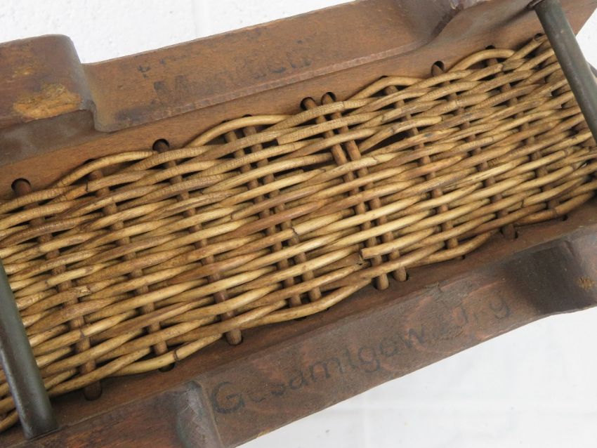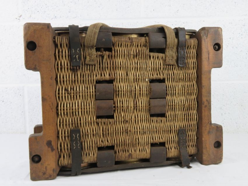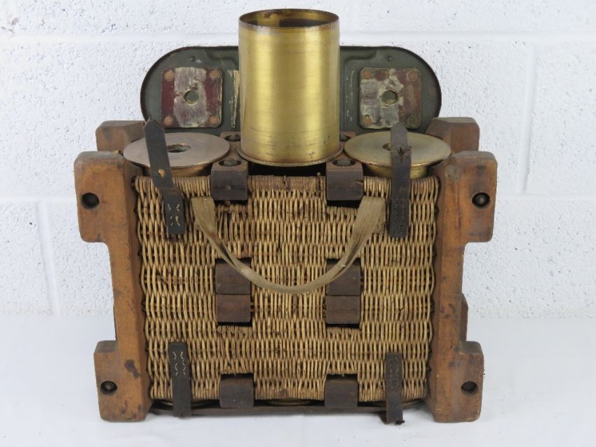 A WWII German transit basket dated 1935 containing a quantity of six 110mm shells.
