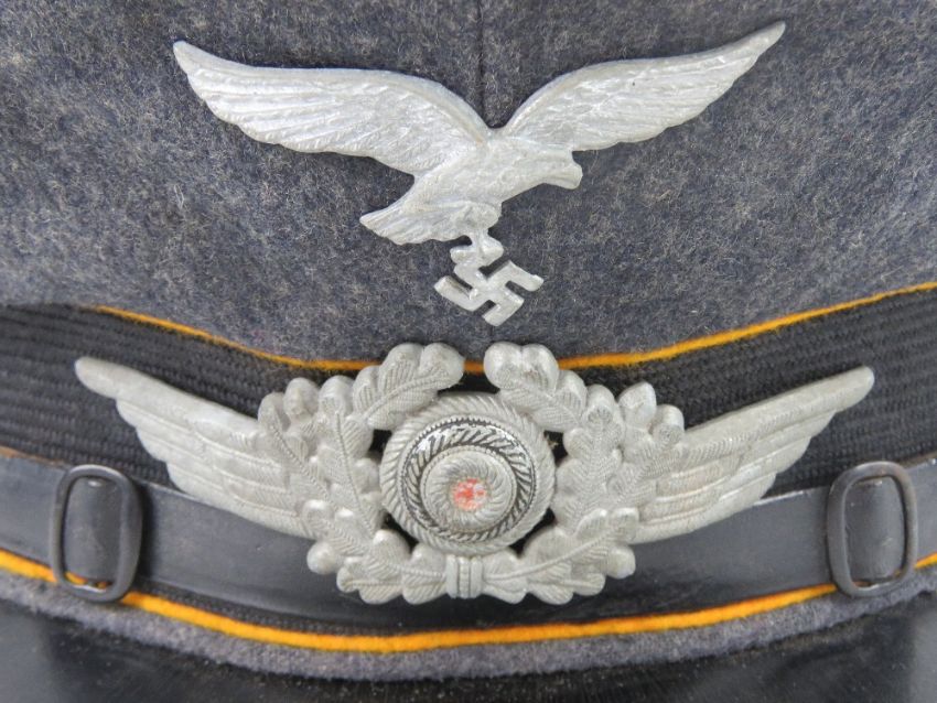 A WWII German Luftwaffe NCOs visor cap, size 57, slightly a/f.