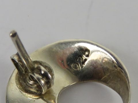 Six pairs of silver earrings including; green Art Deco style enamelled drops, Viking ship clip-on, onyx, etc.