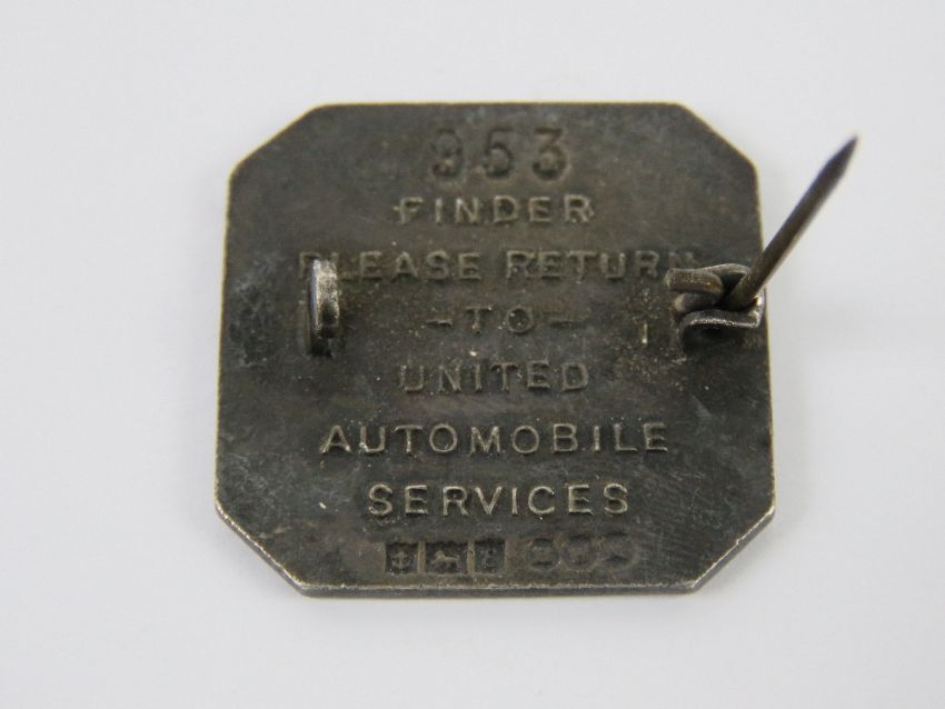 A HM silver United Automobile Services badge having red enamel for '21 Years SErvice' No 953, hallmarked for Birmingham.