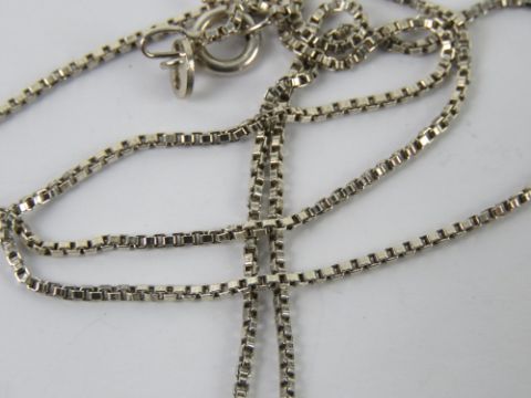 A white metal crucifix pendant having Celtic pattern with 2000 AD upon, no apparent hallmarks, 4cm inc bale, on 925 silver box link chain.