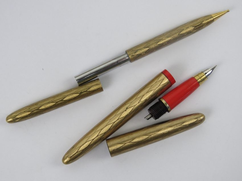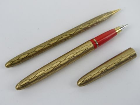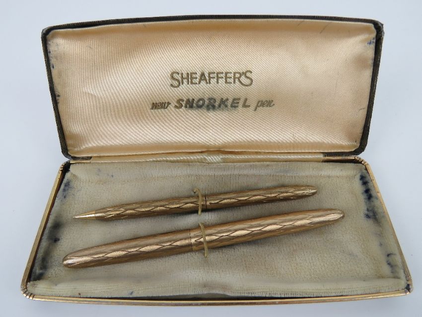 A Sheaffer's 'new snorkel pen set' in box being fountain pen and propelling pencil, slightly a/f.