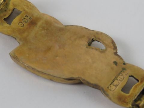 A 9ct gold bar brooch in the form of chain and heart padlock, stamped 9ct, 4.5cm wide, 1.8g.
