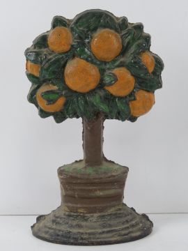 A heavy cast iron contemporary door stop in the form of an orange tree, 28cm high.