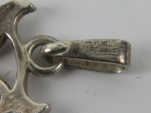 A 925 silver locket of round form having floral engraving throughout, 3.1cm in length inc bale. Together with other assorted silver and white metal pendants including a sterling silver crucifix, a 925 ribbon style pendant set with blue stones, a teardrop crystal pendant with silver bale, a sterling silver Owl pendant, a suite of silver and blue stone jewellery comprising pendant with chain and earrings (in presentation box), etc.