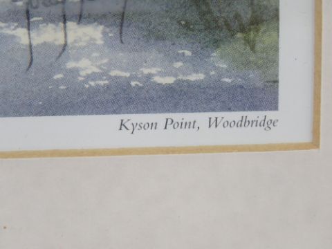 Signed print; Kyson Point, Woodbridge by Judy Matling, signed by the artist in pencil lower left, 31 x 21cm, framed and mounted.