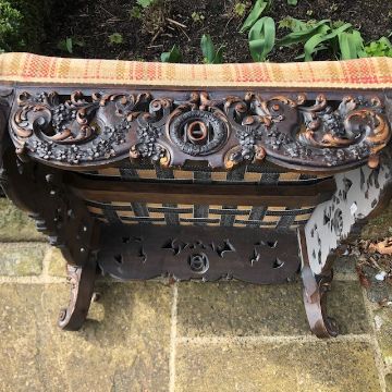A fine square-shaped large late 19th century foot stool, pierced and carved in the Oriental style and raised over outswept carved supports, 76 x 76 x 40cm. Prov; Ex Easton Neston House.
