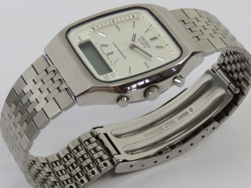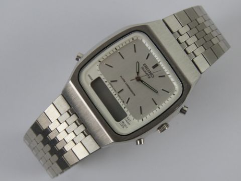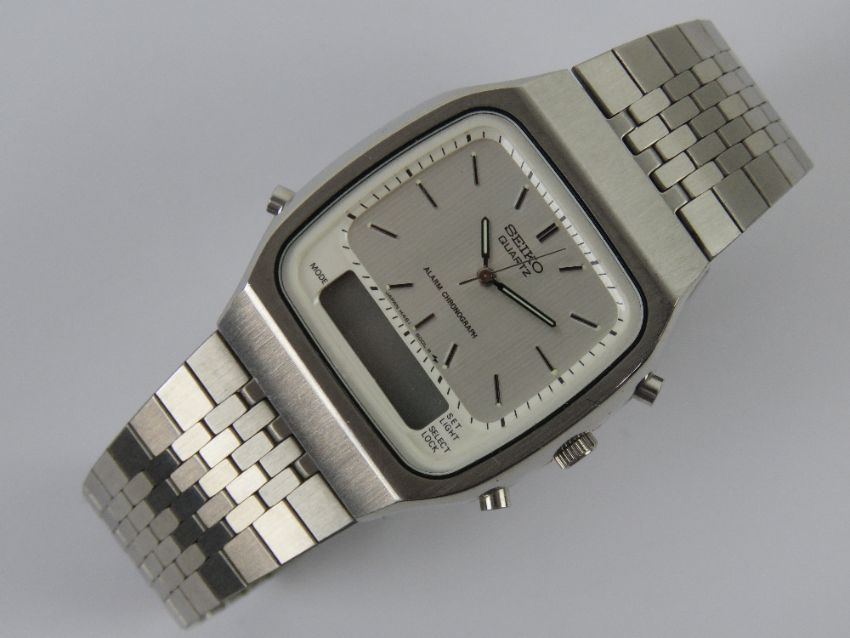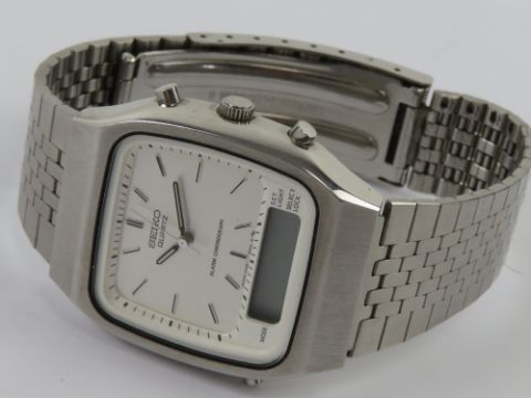 A Seiko alarm chronograph H461-500A, stainless steel strap, silvered dial with digital dial below.