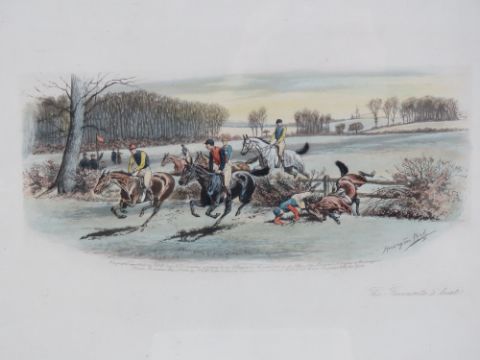A pair of coloured racing prints 'The Favourite Beat' and 'O Rasper' by Harrington Bird, 28 x 41cm each within Hogarth frame.