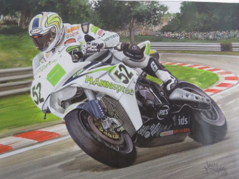 Coloured prints 'A Champions Ride' James Toseland at Brands Hatch in the 2007 World Superbike Championship, each signed James Toseland and the artist Jim Dugdale and measuring 42 x 59cm. Ten items, previously stored in tubes.