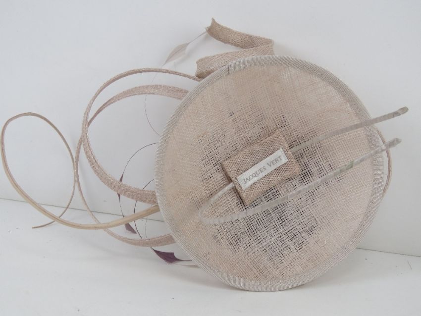 An 'as new' fascinator in blush and purple, within original box with price tag of £79 by Jacques Vert.