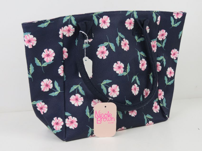 An 'as new' navy floral tote bag by Nicole Brown 30 x 30cm.