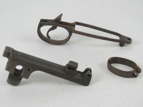 A SMLE metalwork set, including the nose, barrel band and trigger guard.