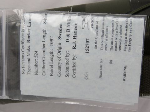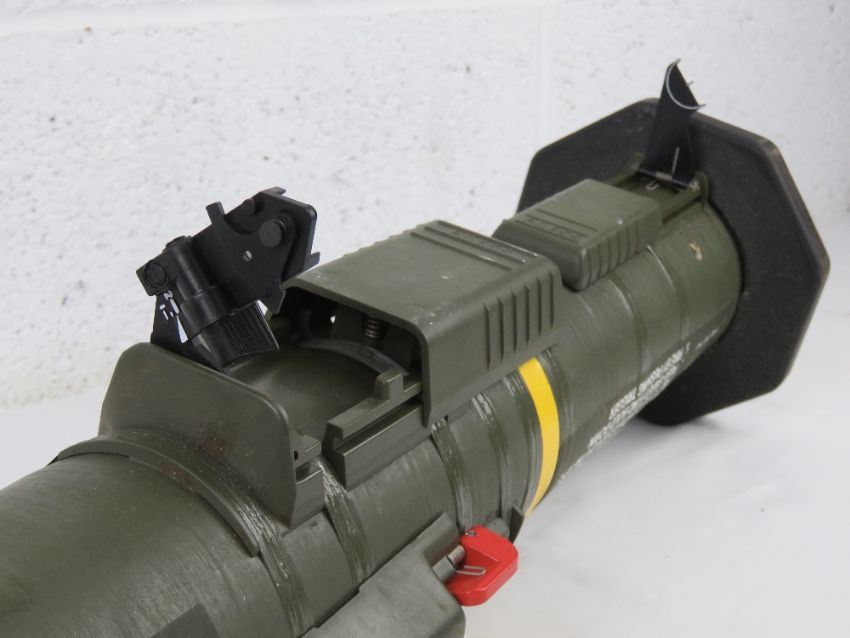 A deactivated M97 ILAW 84mm light anti tank weapon, with moving front grip, shoulder rest, cocking handle, safety and flip up sights. With UK deac certificate.