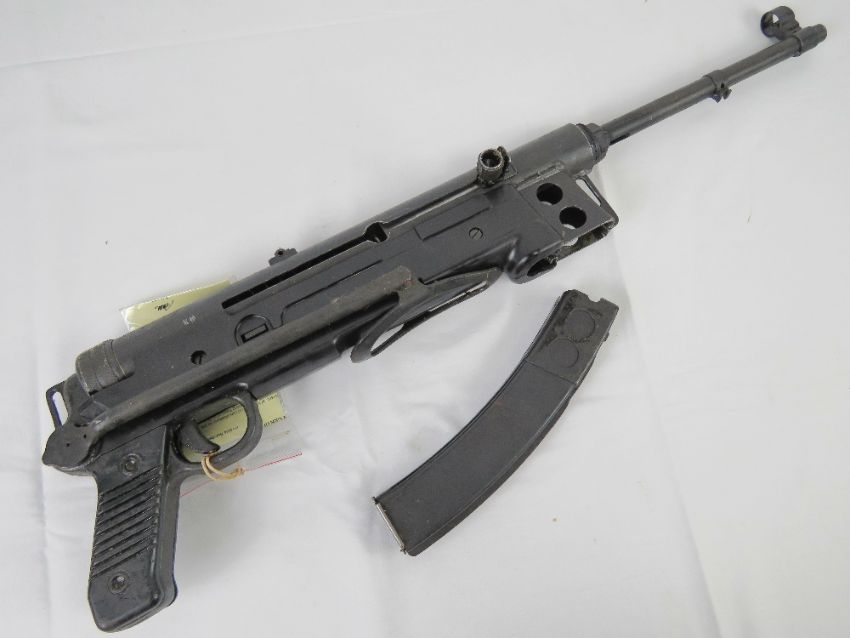 A deactivated Yugoslav M56 7.62mm sub machine gun with moving steel dummy bolt (under spring pressure), selector, and moving trigger. With EU deac certificate.