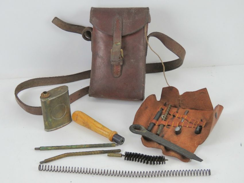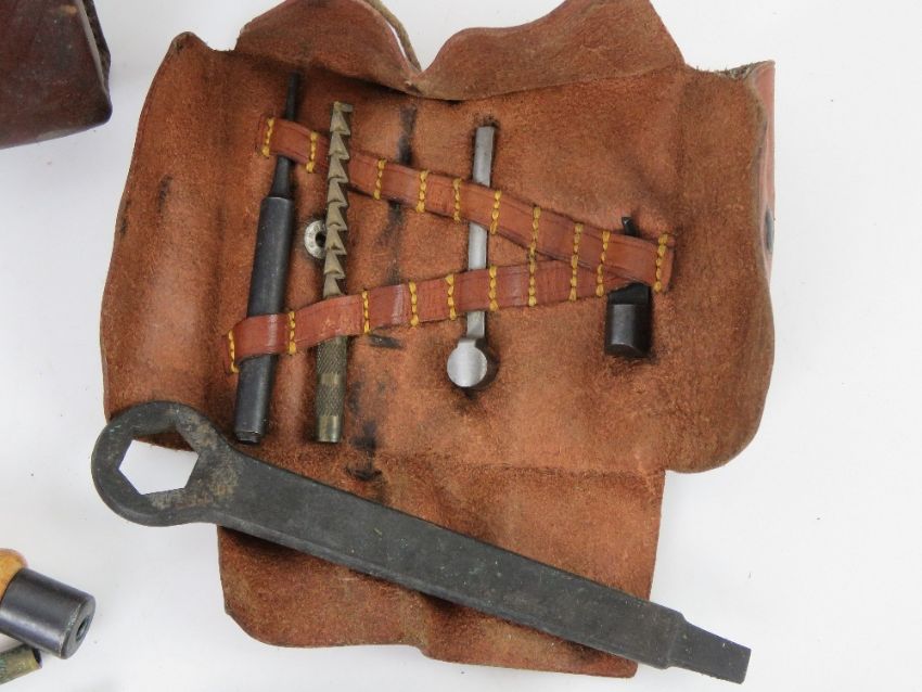 A WWII German MP34 gunners kit in brown leather pouch with strap.
