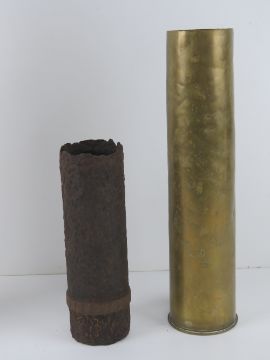 An A.RS.L14 shell dated 1911 with a relic shell head together with an SP255 shell casing dated 1917. Two items.