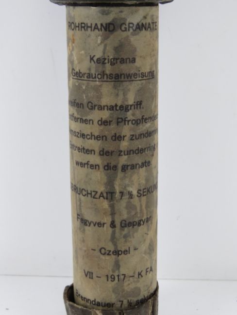 An inert WWI Austro Hungarian grenade, dated 1917, instructions included.