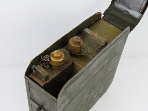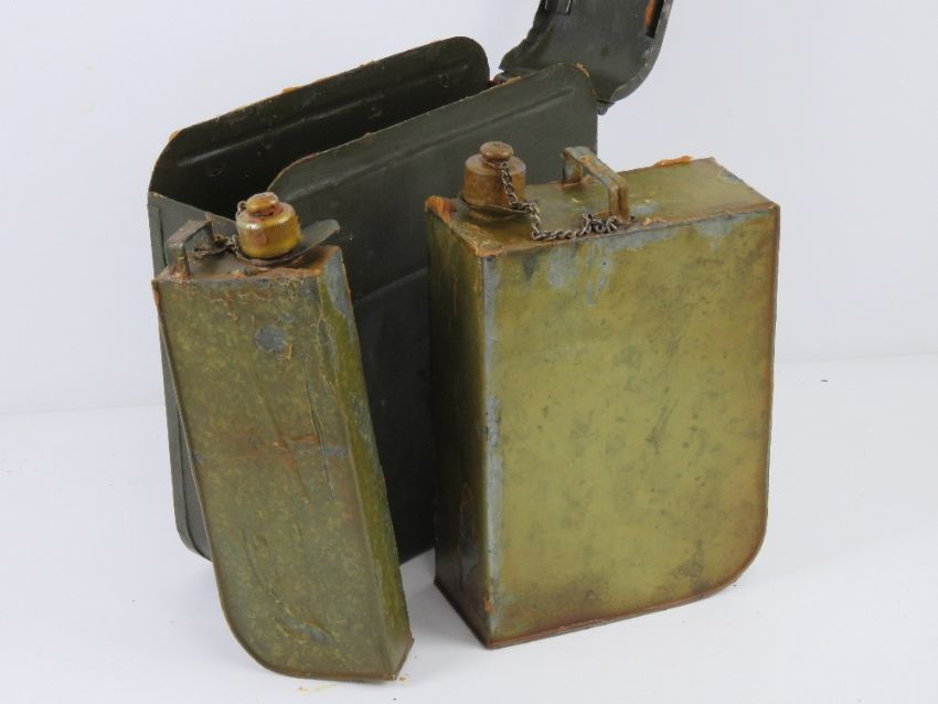 A WWII Russian Maxim tin having P&E tins within, one used for oil and the other for fuel.