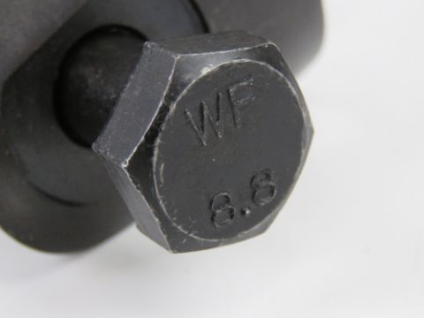 A .30 cal pintle having nut and bolt.