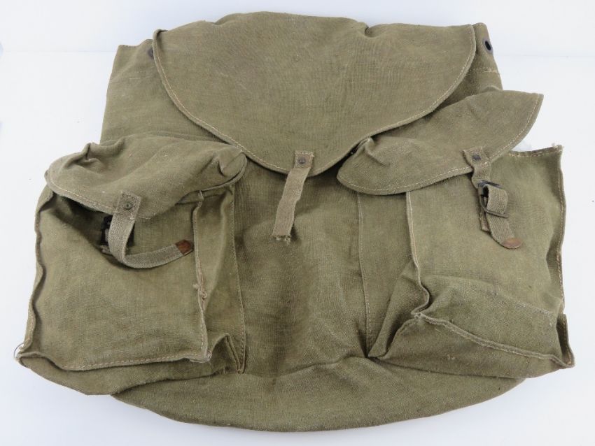 A Russian Military back pack having carry straps.