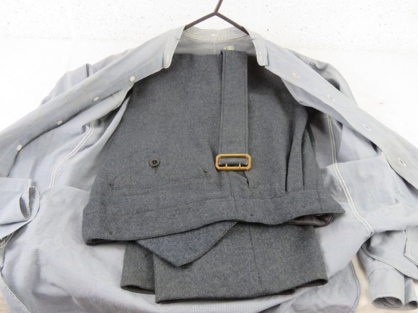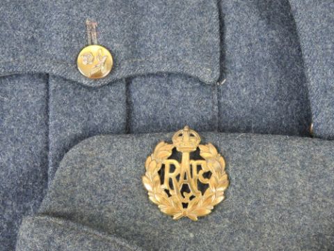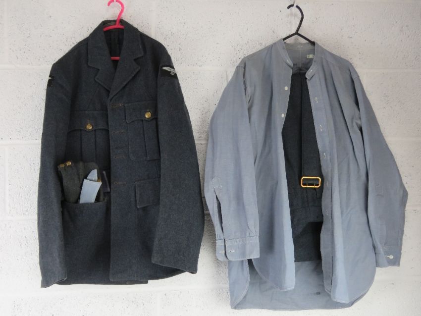 RAF No1 dress tunic, trousers, side cap with badge upon and belt.