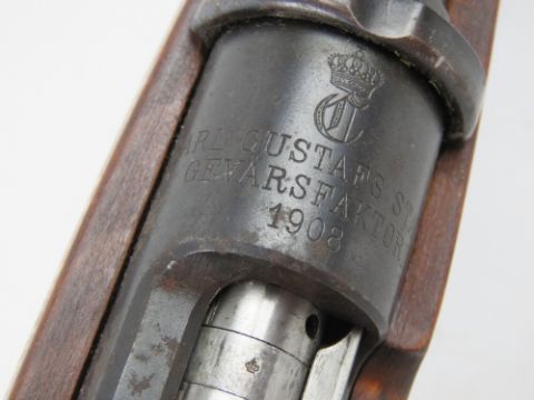 A deactivated Swedish Mauser 6.5mm rifle, dated 1908, Carl Gustav manufacture, with hunting stock and leather sling, moving trigger and bolt, but non firing action. With EU cert.