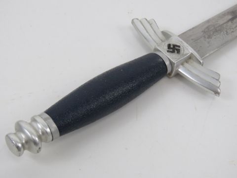 A WWII German NSFK (National Socialist Flying Korp) dagger having makers mark to blade (indistinct), blade measuring 17cm in length. With scabbard.