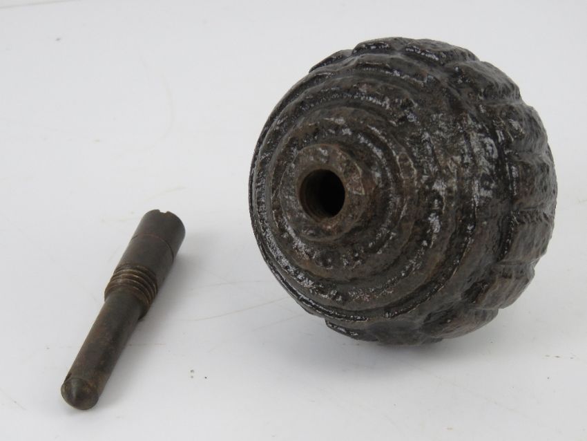 An inert WWI German Kugel grenade, fuse unscrews.