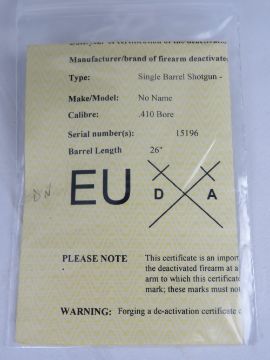 A deactivated single barrel shotgun .410. With EU cert.