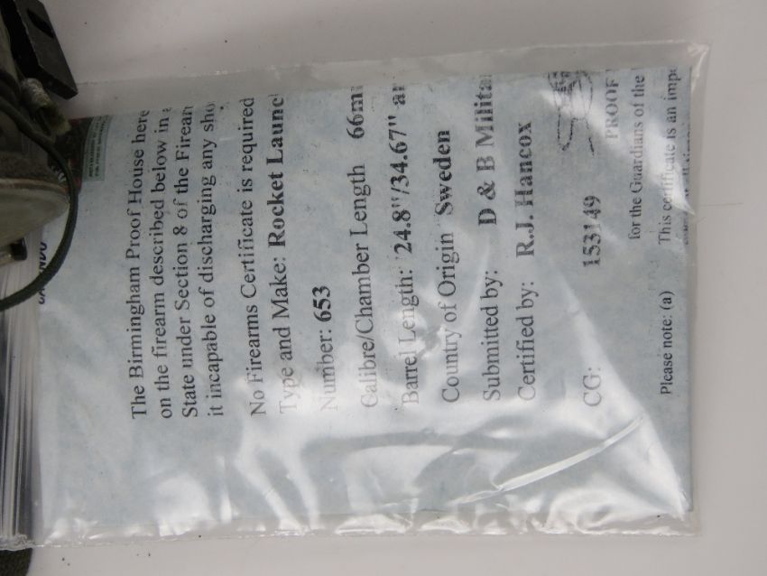 A deactivated M72 LAW rocket launcher 21mm sub munition trainer, opens and closes, with firing mechanism. With UK cert.