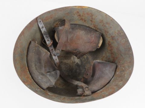 A WWII Japanese helmet with liner.