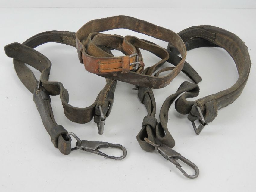A pair of WWII padded Lafette straps, together with a WWII PPSH-41 leather sling.
