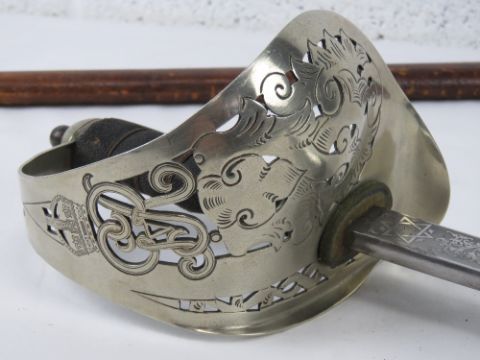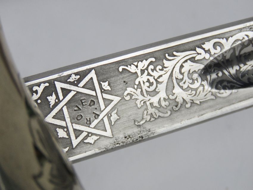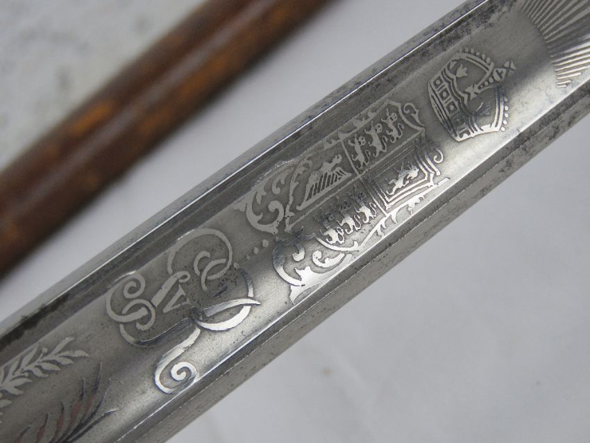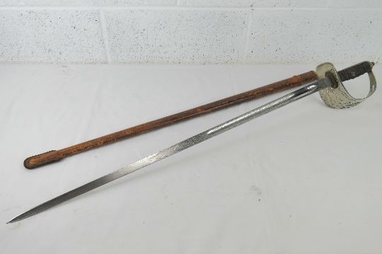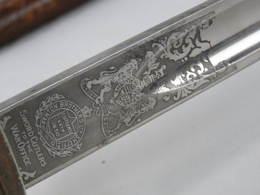 A WWI 1897 Officer's sword and scabbard, bearing makers mark Fenton Brothers Ltd in Sheffield upon.