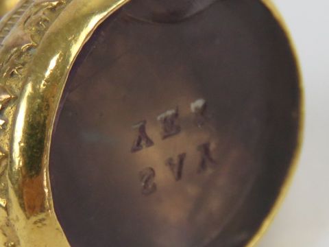 A gilt metal fob having foil backed 'Say Yes' seal (slightly a/f), fob 3cm in length, base 2 x 1.7cm.