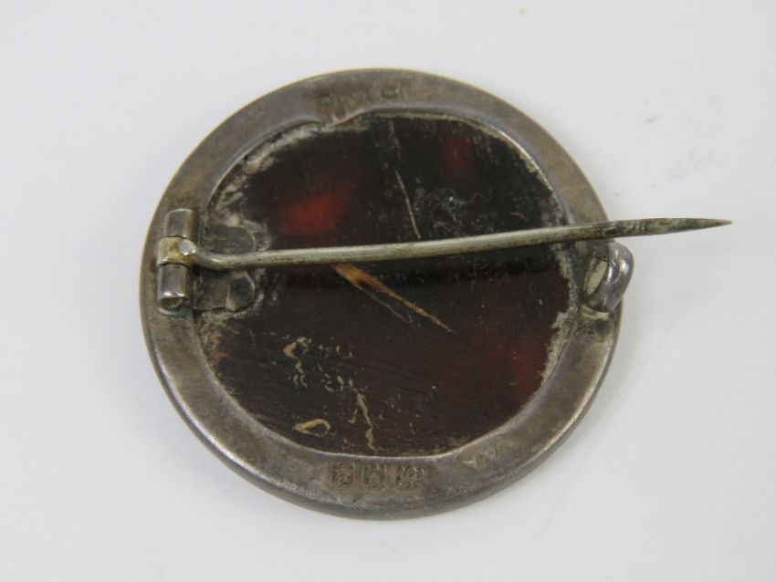 A WWI HM silver and tortoiseshell regimental sweetheart brooch having inlaid emblem for the East Yorkshire Regiment, 2.8cm dia, hallmarked London 1917.