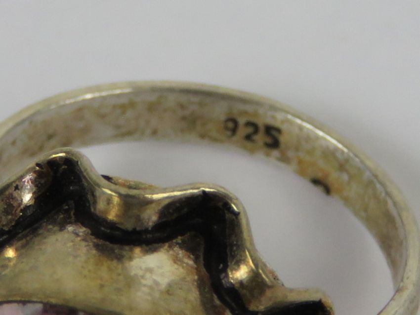 A rose quartz ring, stamped 925, quartz approx 16 x 9mm, size P.