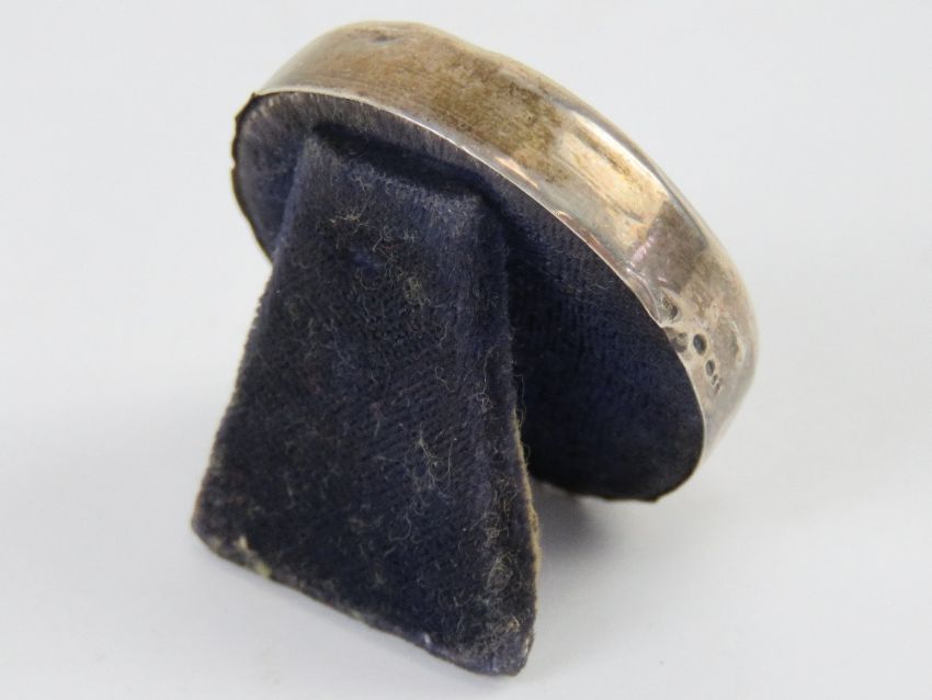 A HM silver miniature photograph frame having London import hallmark for 925 silver, 3.4cm dia.
