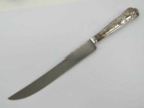 A HM silver handled cake knife in original presentation box, stainless steel blade, Sheffield hallmarks to the handle.