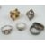 A HM silver ring having inscription throughout in unknown language, hallmarked for Birmingham, size R. Together with a 925 silver ring having blue stone, size N, a purple and marcasite ring (a/f) also stamped 925, a mother of pearl ring, a band stamped 925, and a costume jewellery ring. six items.