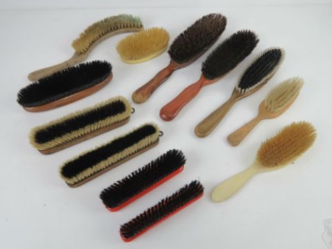 Twelve assorted vintage clothes brushes, crumb brush, etc.