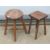 An elm top stool having four turned legs united by turned stretcher, 30cm dia, 37cm high. Together with a square shaped stool raised over four turned legs, 21 x 21 x 35cm. Two items.