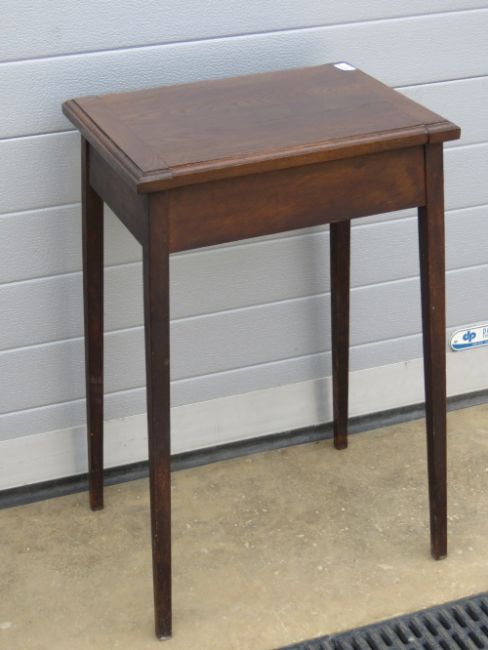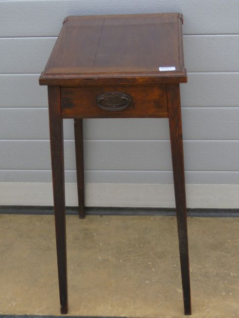 An arts & crafts style good oak hall or planter table with single end drawer and splayed legs 36 x 48 x 76cm.