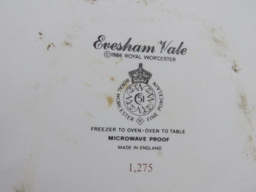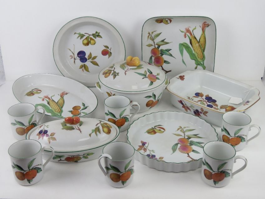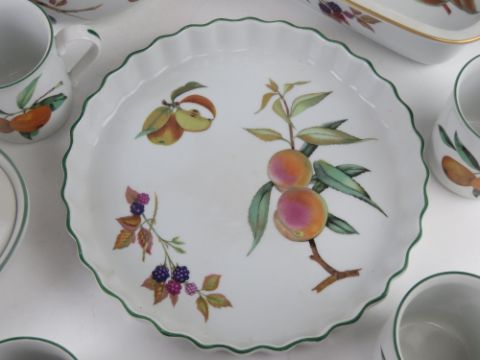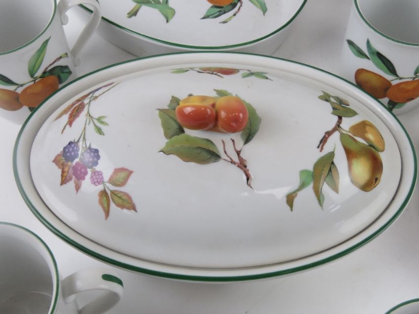 A quantity of assorted Royal Worcester Evesham pattern dinner ware including; casserole and flan dishes, lidded tureens, mugs, etc.
