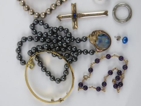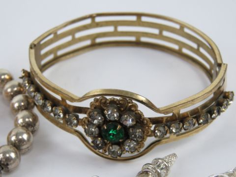 A quantity of assorted silver and costume jewellery including Czechoslovakian bangle, rolled gold bangle, bead bracelet stamped 925, nephrite bead necklace with 925 silver and shell pendant upon, charm bracelet, etc.