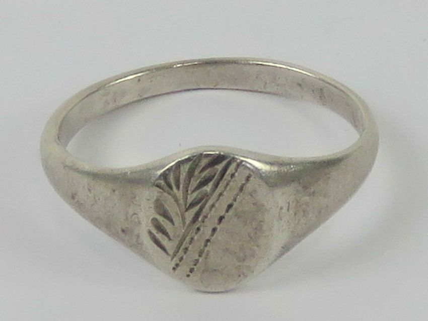 A 925 silver signet ring having half floral engraving, size O.